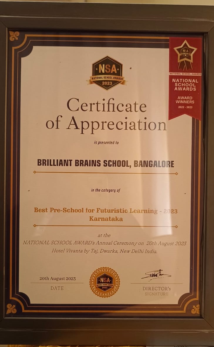 We are thrilled and honored to announce that our preschool has been awarded the prestigious title of ‘Best Pre-School for Futuristic Learning 2023’ in Karnataka. This recognition is a testament to our unwavering commitment to providing innovative and forward-thinking education that prepares young learners for the challenges and opportunities of the future. Our holistic approach to early childhood education integrates cutting-edge teaching methodologies, technology-driven learning tools, and a nurturing environment that fosters curiosity, creativity, and critical thinking skills. Through personalized instruction, hands-on activities, and experiential learning, we empower our students to become lifelong learners and leaders in an ever-evolving world. This award serves as validation of our dedication to excellence and motivates us to continue pushing the boundaries of educational innovation. We are immensely grateful to our dedicated team, supportive families, and the community for their unwavering trust and belief in our vision of shaping the future through education.